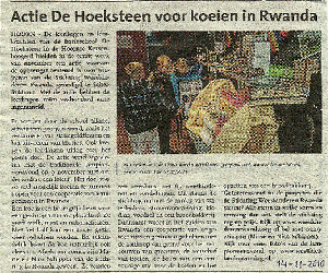 De leerlingen en leerkrachten van de PC Basisschool De Hoeksteen in de Hoornse Kersenboogerd hielden in de eerste week van november 2010 een actie, waarvan de opbrengst werd bestemd voor projecten van de Stichting Weeskinderen Rwanda. Er werden door de school allerlei activiteiten georganiseerd, zoals het verzamelen van statiegeldflessen en het uitvoeren van klusjes met een klussenstrippenkaart. Ook kregen de leerlingen uitleg over het goede doel, waarvoor ze zich inzetten. De actie werd afgesloten met de traditionele lampionnenavond op 9 november met o.a. een loterij. Het doel was zo veel mogelijk koeien te kunnen kopen voor een coöperatie van arme gezinnen in Rwanda.